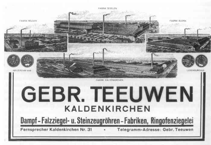 An den Firmengründungen in der Branche waren niederländische Geschäftsleute als Geschäftsführer oder Teilhaber ungefähr zur Hälfte beteiligt, mit Recht lässt sich also behaupten, dass die Dachziegelindustrie auf der deutschen Seite der Grenze den niederländischen Nachbarn auf der anderen Seite viel verdankt. In Kaldenkirchen aber waren alle Betreiber der Dachziegeleien Niederländern. |