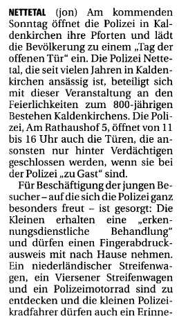 - JUBILÄUMSJAHR 2006 IN KALDENKIRCHEN - "Tag der offenen Tür" bei der Polizei