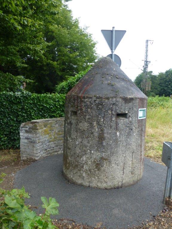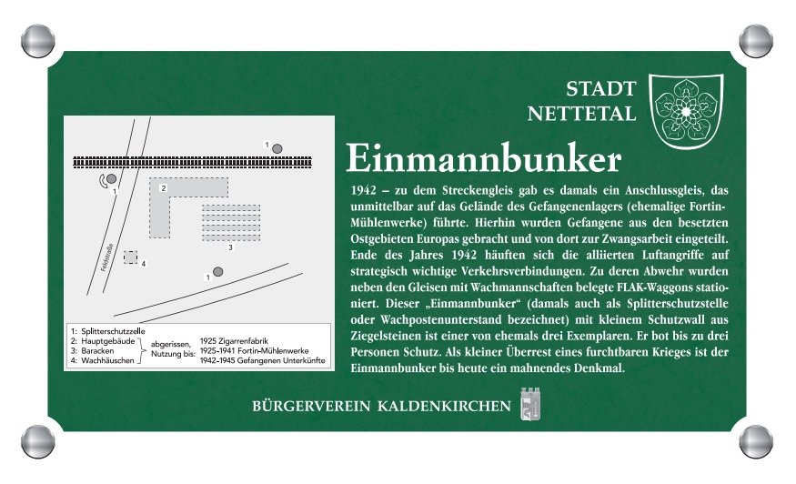Informationsschild am "Einmannbunker" (Splitterschutzzelle ) (aufgestellt am Bahnübergang Feldstrasse)