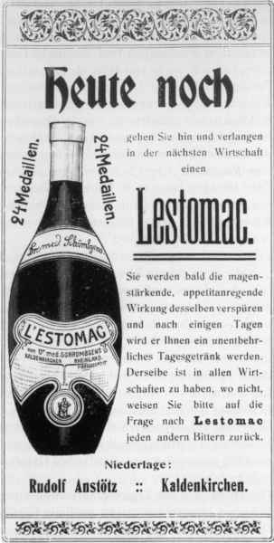 “Stomach“ von Albert Reiners, holländ. Bitterliqueur „Magen=Cognac“ von